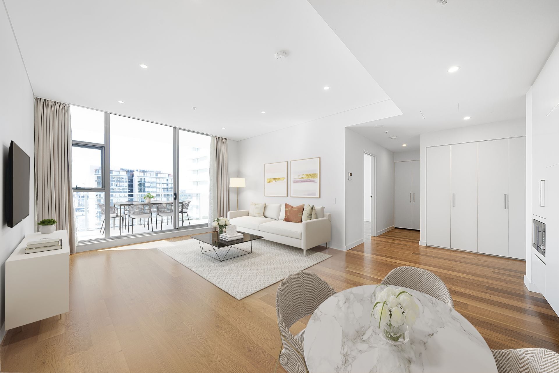 - Sleek open-plan living and dining areas