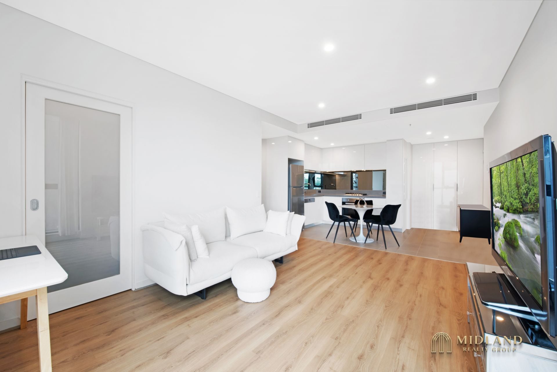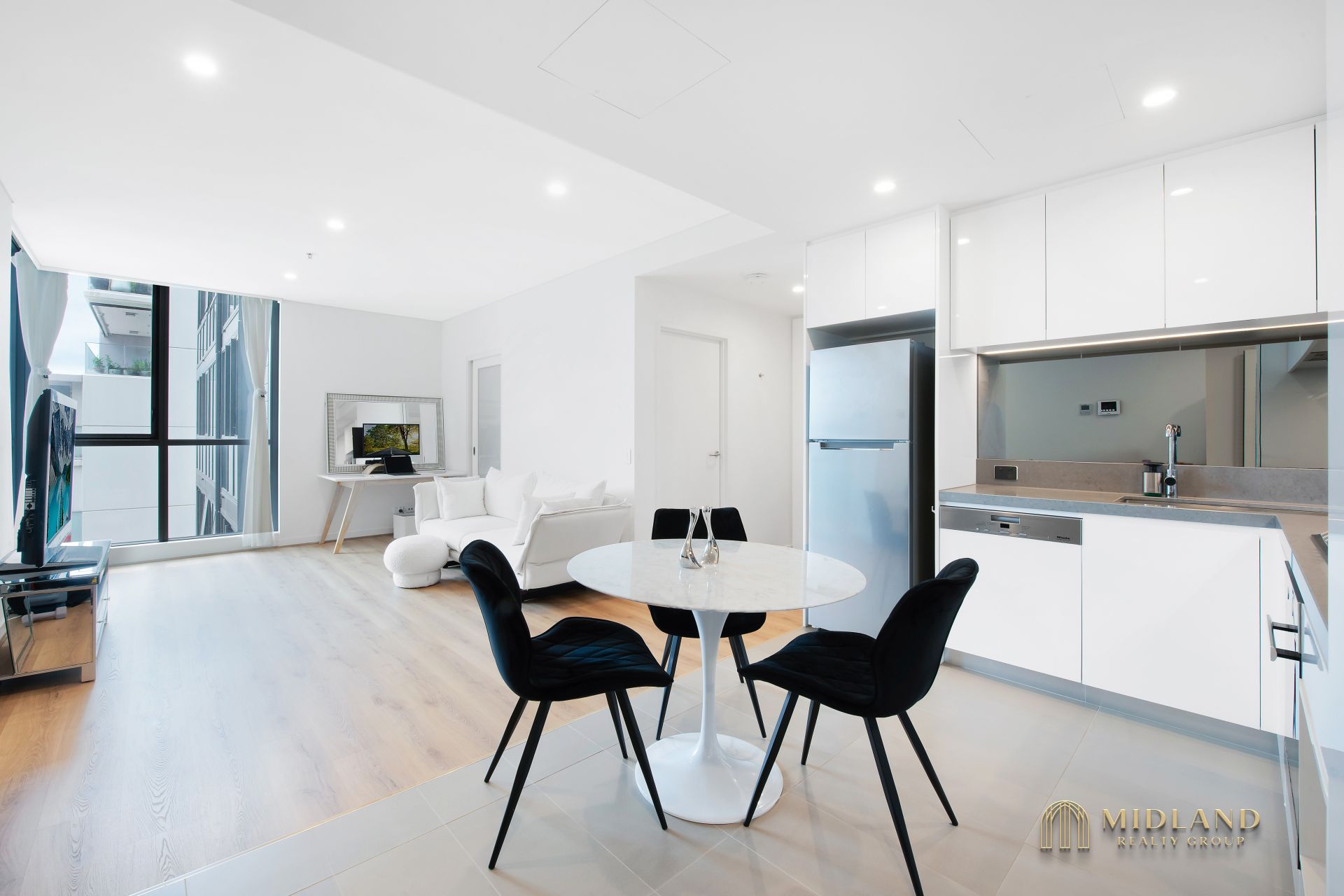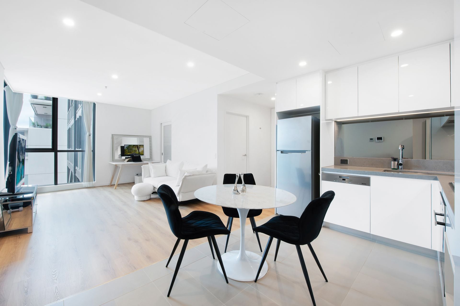 * Bright open-plan living and dining area with abundant natural light