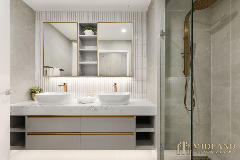 - Bathrooms with double vanities & stone finishes