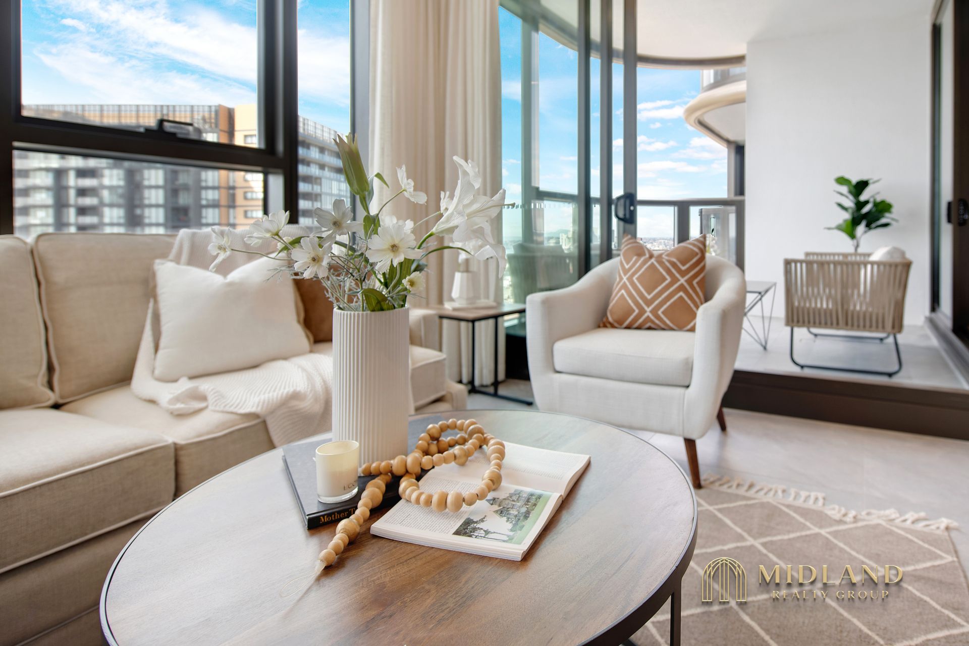 - Spacious bedroom opening onto an oversized balcony with sweeping vistas