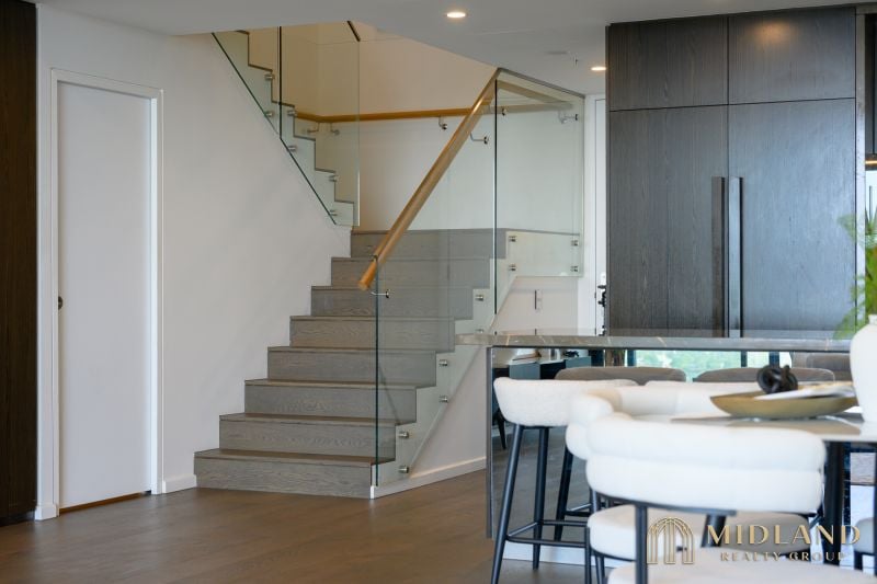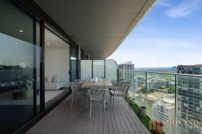 Positioned in the iconic Landmark building, this rare split-level three-bedroom residence showcases exceptional scale, natural light and modern luxury. North facing and set across two generous levels, the home offers a beautifully versatile layout with a bedroom and full bathroom on the lower level-ideal for guests, extended family or flexible use.